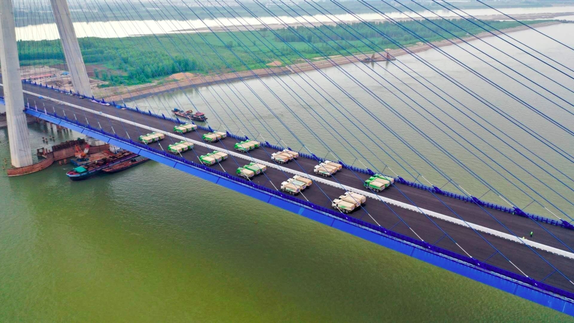 青山長江大橋是武漢市第11座長江大橋,是武漢市四環線東段重要過江通道及重點控制性工程,路線全長7.548公里,全部為橋梁工程,其中長江大橋長4.374km,南岸引橋長1.634km, 北岸引橋長1.540km。全橋采用雙向八車道高速公路建設標準,橋梁標準橫斷面寬度41m(不含布索區),設計時速100km/h,荷載等級為公路I級。該大橋跨江主橋為(100+102+148+938+148+102+100)雙塔雙索面全漂浮體系鋼箱及鋼箱結合梁斜拉橋,主跨938m;中跨主梁采用整體式鋼箱梁,邊跨主梁采用鋼-砼結合梁主梁,梁寬48m。